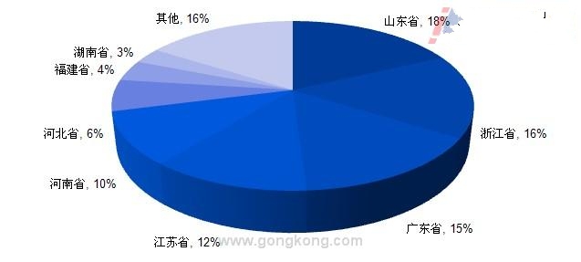 2010年中國造紙產量地區(qū)分布