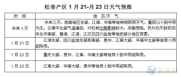 華訊松香網(wǎng)提醒:未來三天,西南地區(qū)東部、江南、華南等地持續(xù)陰雨天氣,量級以小到中雨為主。云南中北部氣溫偏低,對松樹出脂影響較大,采脂受阻。近期云南松脂市場受天氣影響較大,大部分地區(qū)因為低溫松樹出脂及工人采脂積極性都普遍偏低,市場流通松脂量極為有限,部分地區(qū)工廠為保證生產(chǎn)小幅上調(diào)收脂價格,但脂量改觀不大,預(yù)計短期內(nèi)松脂價格或繼續(xù)調(diào)整。