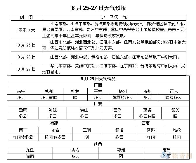 松香產區(qū)8月25-27日天氣預報