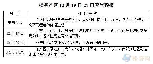 松香產(chǎn)區(qū)12月19日-21日天氣預報