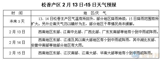 華訊松香網(wǎng)提醒:未來(lái)三天,大部分松香產(chǎn)區(qū)降雨天氣有所減弱,但天氣仍較寒冷,除云南外兩廣、江西及福建等產(chǎn)區(qū)基本無(wú)人上山采脂。云南部分地區(qū)干旱天氣持續(xù),從目前來(lái)看對(duì)松脂影響不大,若在未來(lái)的一段時(shí)間里干旱不能緩解,不排除對(duì)松脂產(chǎn)量有所影響。