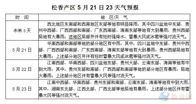 松香產(chǎn)區(qū)5月21日-23日天氣預(yù)報(bào)