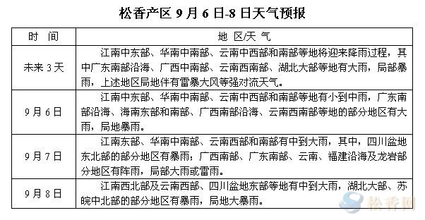華訊松香網(wǎng)溫馨提醒:未來三天,桂粵滇閩贛等產(chǎn)區(qū)以晴或陰天為主,晝夜溫差較前增大,另桂中南、粵中南、滇西南部分地區(qū)有陣雨或雷雨,局部大到暴雨。本周兩廣、云南、湖北等市場松脂流通量仍偏少,福建、江西局部較前略有增多。另外,進(jìn)入9月,云南產(chǎn)區(qū)雨季逐漸結(jié)束,生產(chǎn)旺季即將到來,市場雖有旺季推遲的預(yù)期,但現(xiàn)階段業(yè)內(nèi)已將部分關(guān)注點(diǎn)轉(zhuǎn)向云南市場。