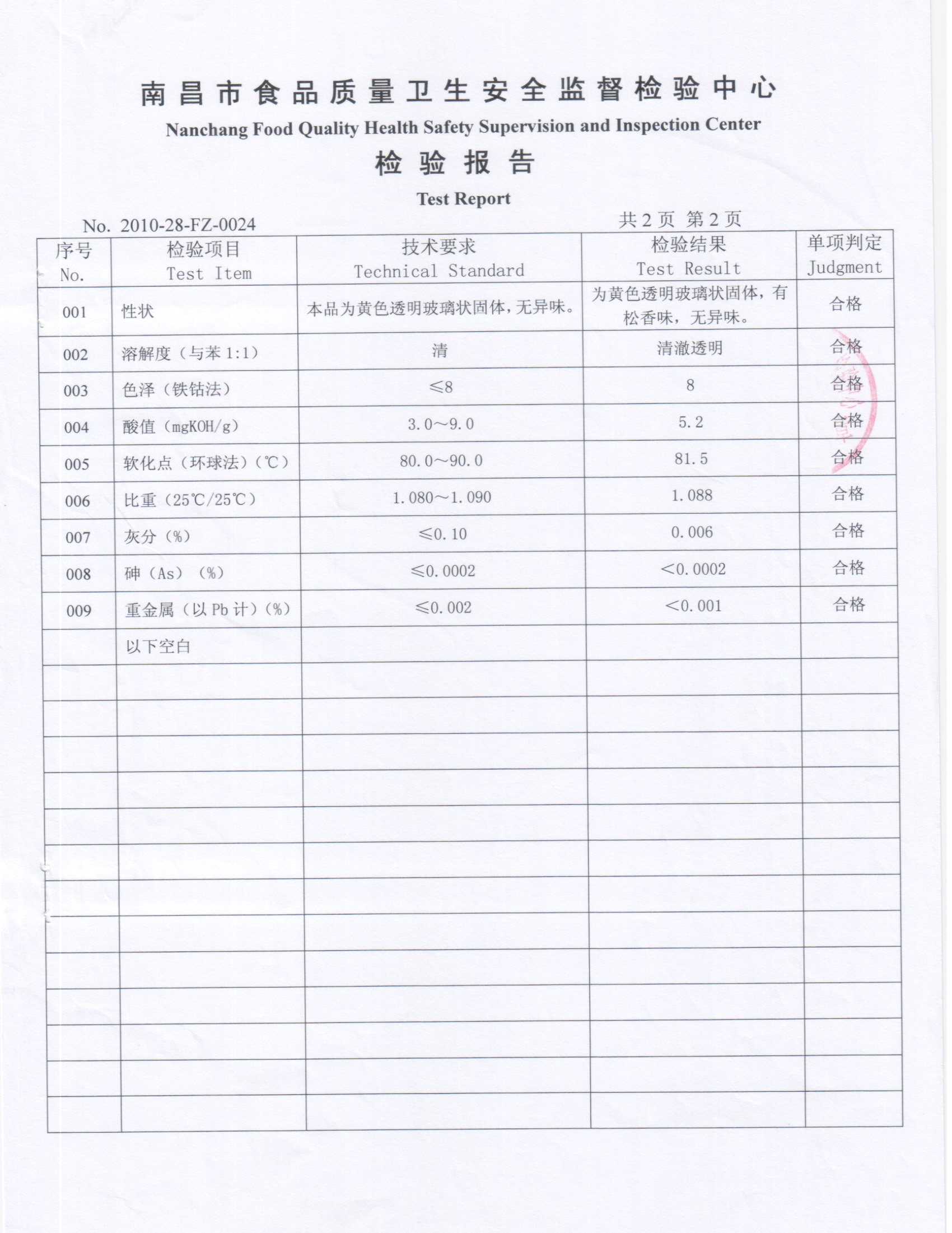 食品級(jí)松香甘油酯檢測(cè)報(bào)告(寧都福明)