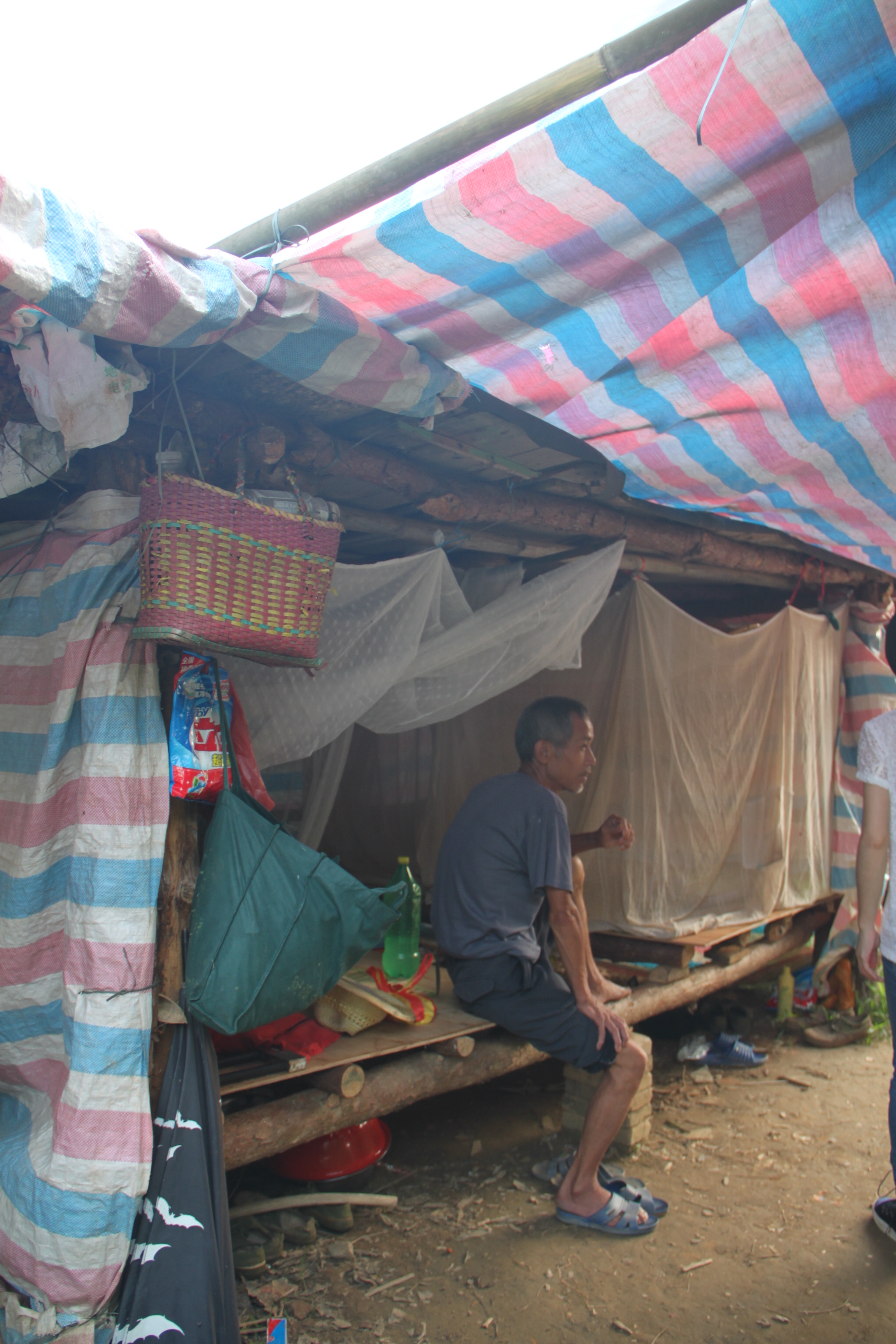 在封開(kāi),我們幸運(yùn)地來(lái)到松脂采集地區(qū),了解脂農(nóng)的勞作和生活情況。當(dāng)?shù)刂r(nóng)十分熱情淳樸,由于到達(dá)時(shí)臨近晚上,山里蚊蟲(chóng)泛濫,我們瞬間被包圍??吹奖晃孟x(chóng)叮的滿身包的我們,脂農(nóng)們七嘴八舌紛紛支招,但由于語(yǔ)言不通(尤其是本人),溝通顯得有些滑稽,比手畫(huà)腳好一陣忙亂。即便如此,他們?nèi)匀粺崆榈嘏c我們聊天,并帶我們?nèi)⒂^他們的生活區(qū)。