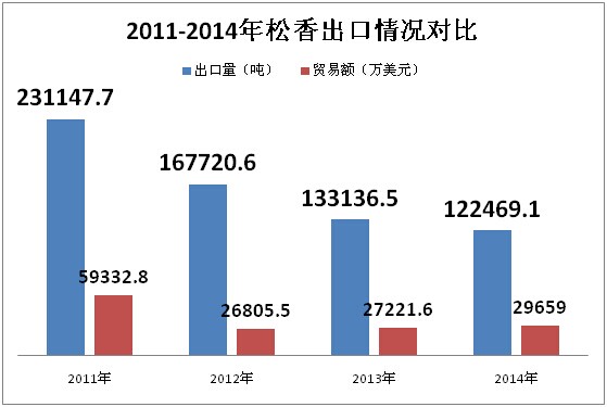 一般來說,每年的松香生產(chǎn)旺季,也是我國(guó)松香的出口旺季,但是自2011年以來,我國(guó)松香年出口量逐漸出現(xiàn)下降,今年的出口量則達(dá)到一個(gè)新低。今年1-10月,我國(guó)松香出口量?jī)H為70674噸,與去年同期相比減少32%。其實(shí)2014年的松香出口量已是近幾年來最少的,但是從目前情況分析,2015年的松香出口量將再創(chuàng)新低。雖然2015年的出口數(shù)據(jù)尚未出爐,但從2015年整體的出口量來判定,最后兩個(gè)月出口量出現(xiàn)放量大增的可能性非常小,按照今年的整體情況估算,全年的松香總出口量將在9萬噸左右,超過10萬噸的可能性非常小,因此,今年全年的出口量將是近幾年來的新低。