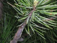 形態(tài)描述:?jiǎn)棠?,高達(dá)25m,胸徑約1m余;樹冠在壯年期呈塔形或廣卵形,在老年期呈盤狀傘形。樹皮灰棕色,呈鱗片狀開裂,裂縫紅褐色。上枝粗壯,無(wú)毛,褐黃色;冬芽圓形,端尖,紅棕色,在頂芽旁常輪生有3-5個(gè)側(cè)芽。葉2針1束,罕3針1束,長(zhǎng)10-15cm,樹脂道5-8或更多,邊生;葉鞘宿存。雄球花橙黃色,雌球花綠紫色。當(dāng)年小球果的種鱗頂端有剌,球果卵形,長(zhǎng)4-9cm。無(wú)柄或有極短枘,可宿存枝上達(dá)數(shù)年之久;種鱗的鱗背肥厚,橫脊顯著,鱗臍有剌。種子卵形,長(zhǎng)6-8mm。淡褐色有斑紋;翅長(zhǎng)約1cm,黃白鬼,有褐色條紋。子葉8-12?;ㄆ趐4-5月;果次年10月成熟。