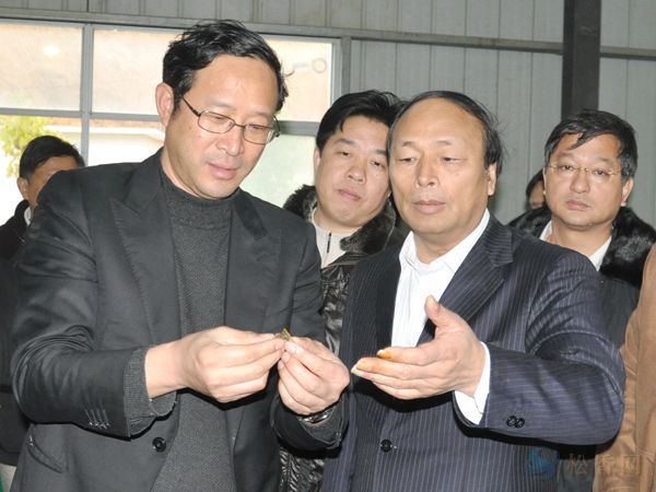 陳章良副主席(左)在向孔仕才董事長了解公司產(chǎn)品生產(chǎn)情況