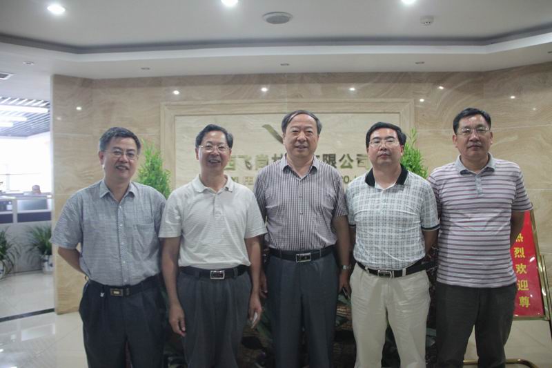 中國林產(chǎn)工業(yè)協(xié)會松香分會秘書長劉自遠(左三)、華訊集團董事長黃曉東(左二)與江西飛尚林產(chǎn)公司高層領導合影