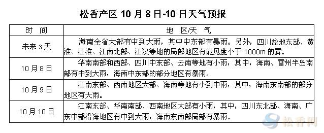 華訊松香網(wǎng)提醒:國慶節(jié)期間,東南沿海地區(qū)持續(xù)降雨,節(jié)后三天各產(chǎn)區(qū)天氣基本都開始逐漸結(jié)束雨水天氣,部分產(chǎn)區(qū)出現(xiàn)氣溫回升的跡象,較利于松樹出脂,但是整體脂量,及松脂松香價格走向仍由市場各方因素決定。