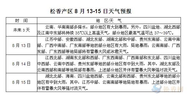 松香產區(qū)8月13日-15日天氣預報